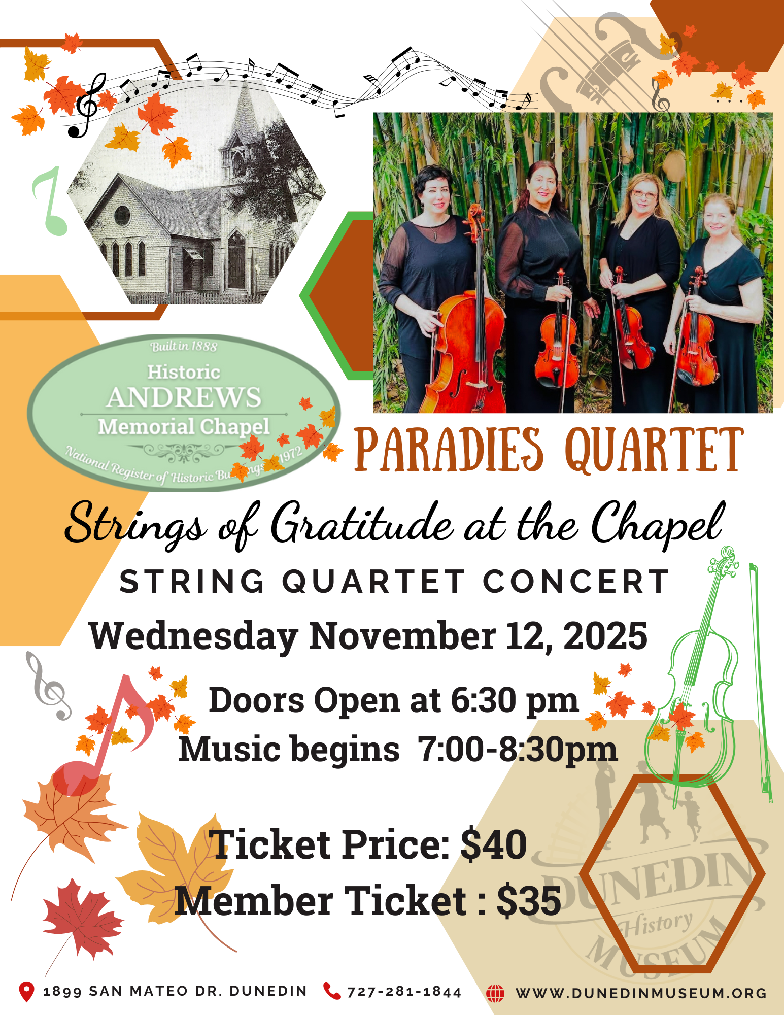 Guests will enjoy a warm evening of music inside the historic Andrews Memorial Chapel. Join us for an unforgettable night where history, elegance, and community come together in perfect harmony.